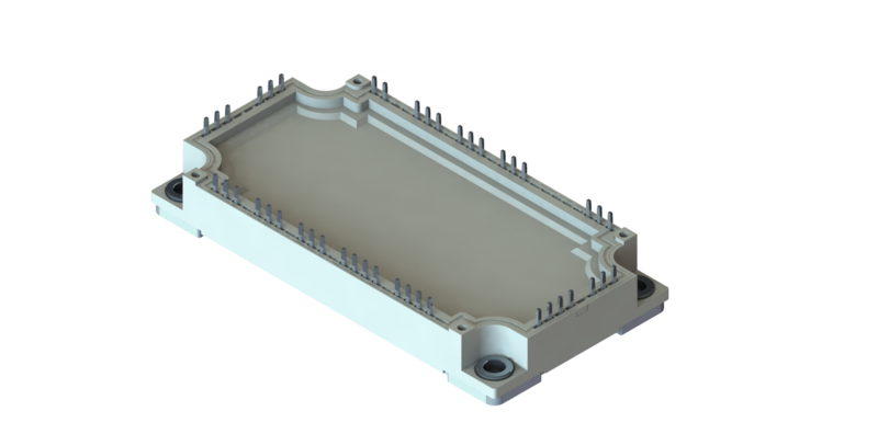 Low Inductance IGBT Module MIRA-IRB12LA-150N with 17 mm Height Housing. IGBT module with blocking voltage 1200V and current 150A. IGBT MIRA-IRB12LA-150N has copper baseplate, improved thermal cycling and integrated temperature sensor.